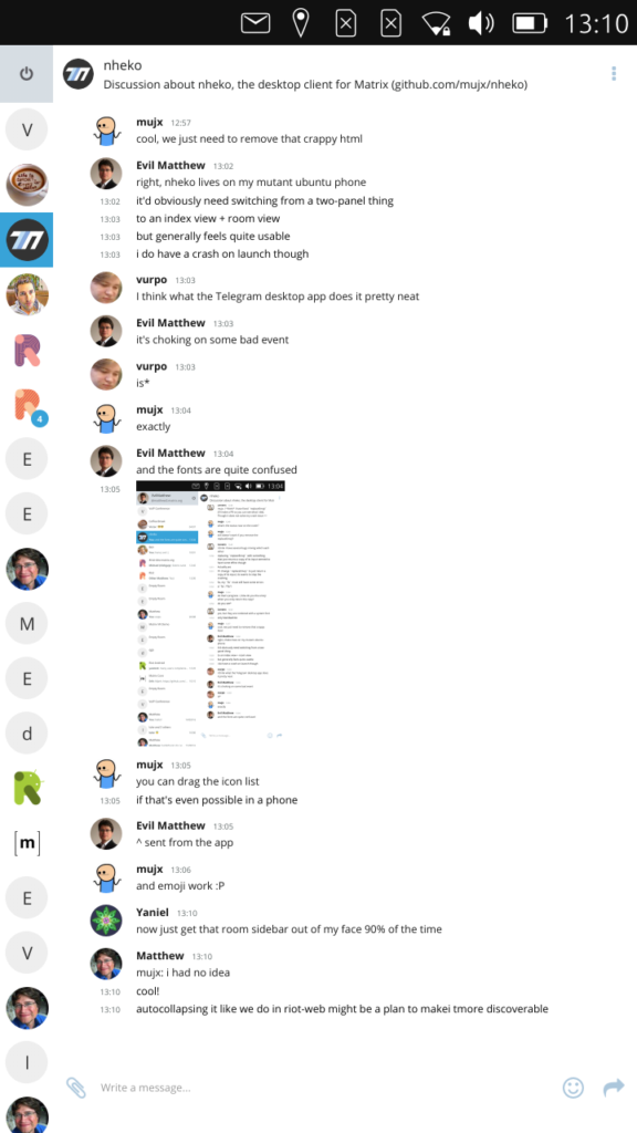 If you haven't noticed already, Riot/Web 0.13 is out today, as is Riot/iOS 0.6.2 and Riot/Android 0.7.4. These contain massive improvements across the board - particularly mainstream Communities support at last on Riot/Web; CallKit/PushKit on Riot/iOS thanks to Denis Morozov (GSoC 2017 student for Matrix) and Share Extension on iOS thanks to Aram Sargsyan (also GSoC 2017 student!); and End-to-end Key Sharing on Riot/Android and a full rewrite of the VoIP calling subsystem on Android.