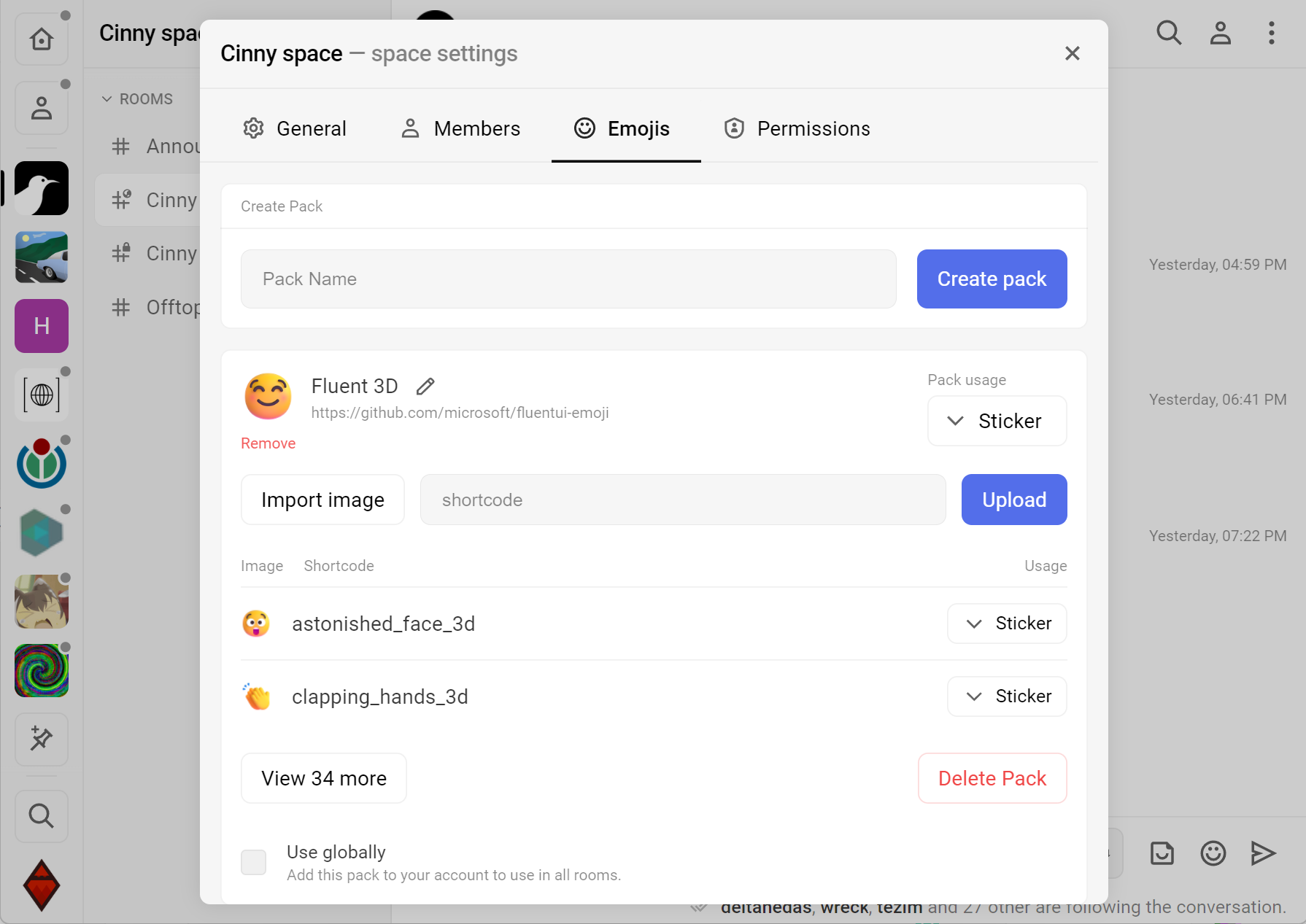 Pro-Tip: Join #cinny-space:matrix.org to check out some cool sticker packs. There are some great packs in #stickers-and-emojis:pixie.town too.